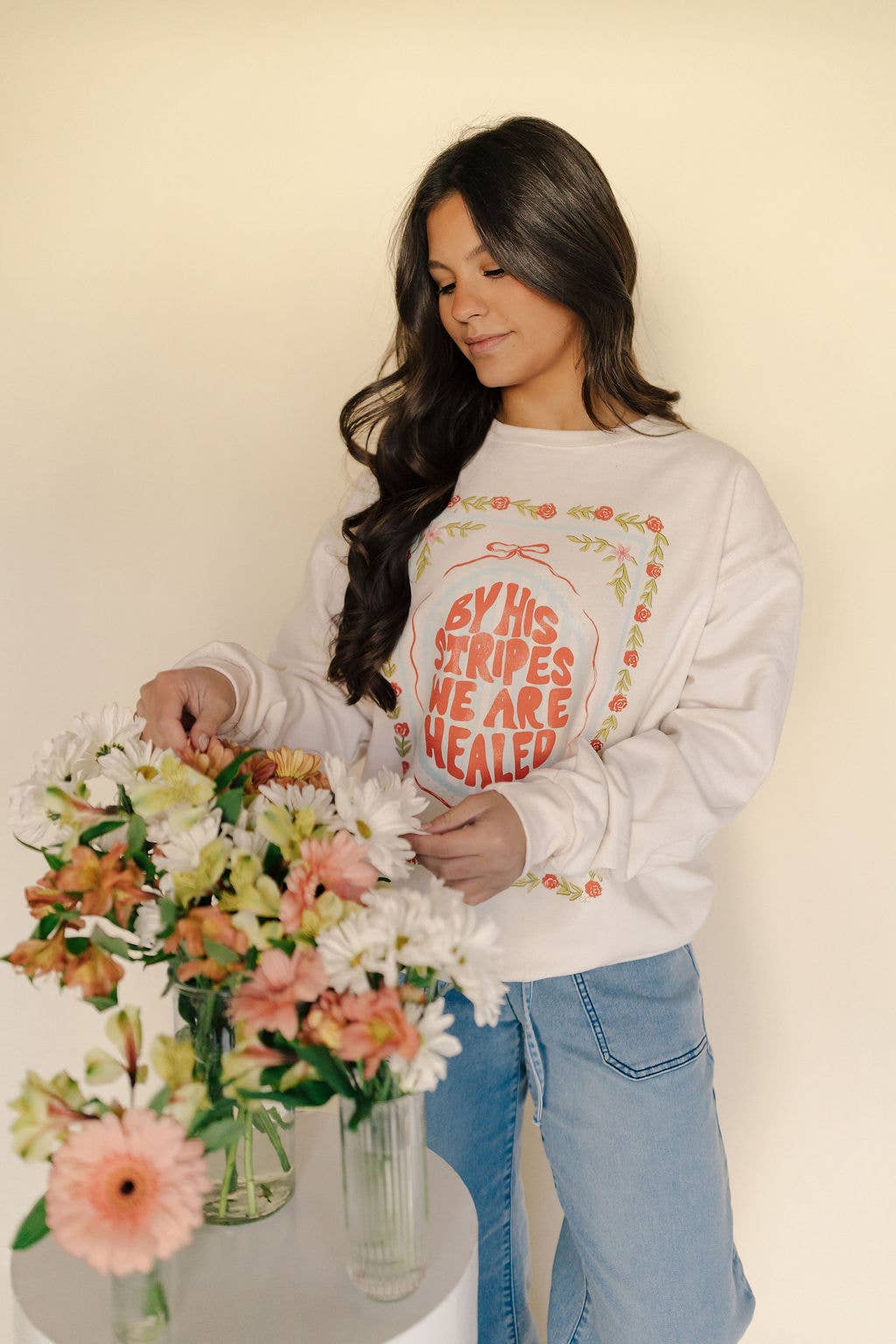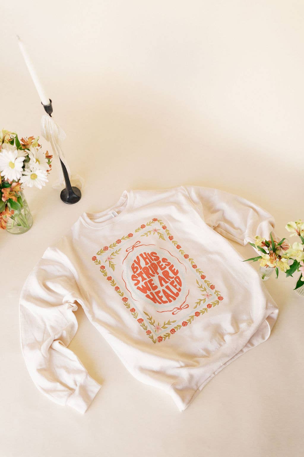 Celebrate the season of new beginnings with our By His Stripes We Were Healed graphic tee! Perfect for your spring + Easter Collection Unisex Comfort Color Tee 100% Ring-spun Cotton.